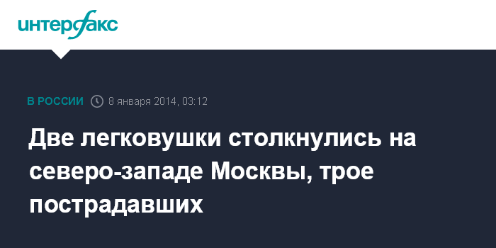 Москва. 8 января. ИНТЕРФАКС - Три человека пострадали в результате ДТП на северо-западе Москвы в ночь на среду, сообщили "Интерфаксу" в пресс-службе столичной ГИБДД.