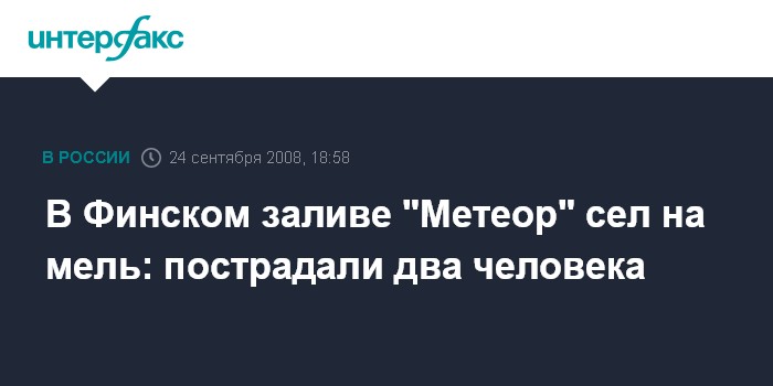 Москва. 24 сентября. INTERFAX.RU - В Петербурге в акватории Финского залива в среду село на мель судно на подводных крыльях "Метеор", на борту которого находились 93 человека, сообщили "Интерфаксу" в главном управлении МЧС по городу.