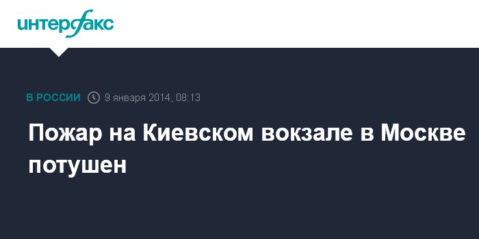 Москва. 9 января. INTERFAX.RU - Пожар на Киевском вокзале в Москве ликвидирован, сообщили "Интерфаксу" в пресс-службе ГУ МЧС РФ по Москве в четверг.