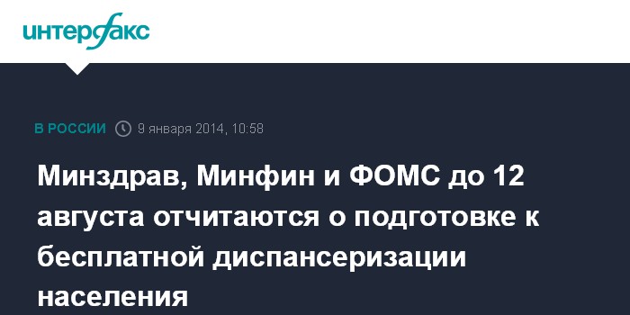 Минздрав, Минфин и ФОМС до 12 августа отчитаются о подготовке к бесплатной диспансеризации населения