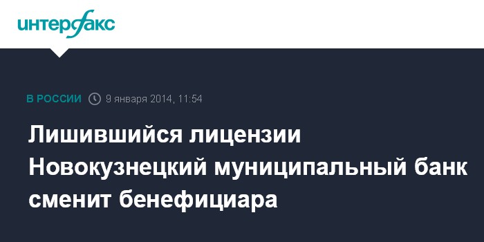 Лишившийся лицензии Новокузнецкий муниципальный банк сменит бенефициара