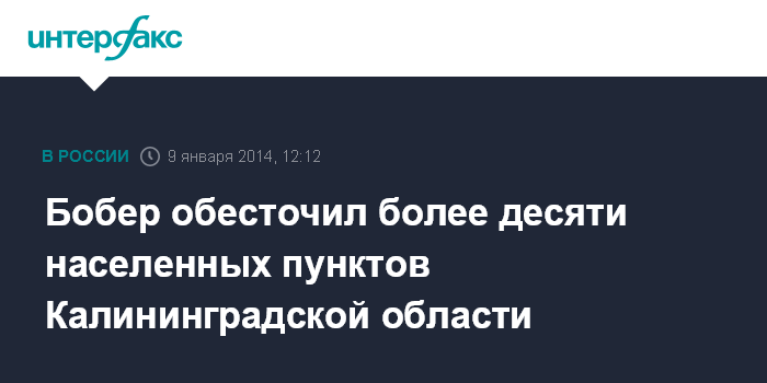 Москва. 9 января. INTERFAX.RU - Подточенное бобром дерево стало причиной отключения энергоснабжения более 10 населенных пунктов в Калининградской области.