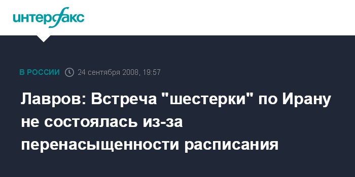 Москва. 23 сентября. INTERFAX.RU - Встреча "шестерки" по ядерной программе Ирана в ходе Генассамблеи ООН не была отменена, потому что не была назначена, заявил в среду в Нью-Йорке министр иностранных дел России Сергей Лавров.