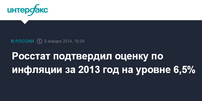 Москва. 9 января. INTERFAX.RU - Инфляция в России в декабре 2013 года составила 0,5%, а в целом за 2013 год - 6,5%, сообщила в четверг Федеральная служба государственной статистики (Росстат).