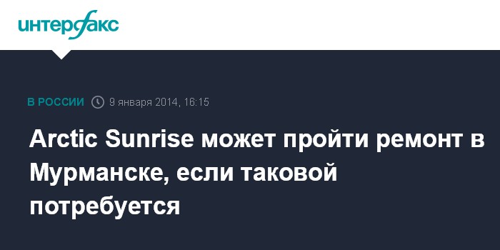 Москва. 9 января. INTERFAX.RU - Судно Arctic Sunrise, задержанное в Печорском море после попытки "Гринпис" провести акцию протеста на платформе "Приразломная", в случае необходимости может пройти ремонт непосредственно в Мурманске.
