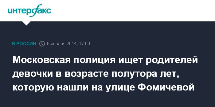 Московская полиция ищет родителей девочки в возрасте полутора лет, которую нашли на улице Фомичевой
