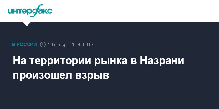 Москва. 10 января. INTERFAX.RU - В центре Назрани на территории торгового рынка "Мархаба" в одном из канализационных коллекторов произошел взрыв, сообщили агентству "Интерфакс-Юг" в четверг в пресс-службе МВД Ингушетии.