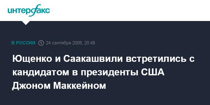 Москва. 24 сентября. INTERFAX.RU - В Нью-Йорке состоялась встреча президента Украины Виктора Ющенко, президента Грузии Михаила Саакашвили и кандидата в президенты США от Республиканской партии Джона Маккейна.