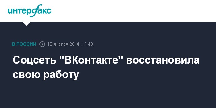 Москва. 10 января. INTERFAX.RU - Социальная сеть "ВКонтакте", по состоянию на 15:38, восстановила свою работу.