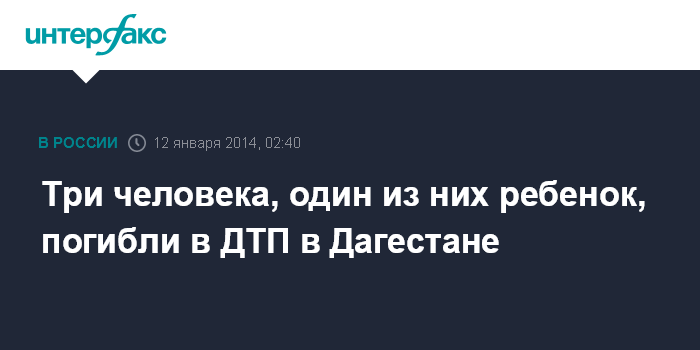 Москва. 12 января. INTERFAX.RU - Двое взрослых и пятилетний ребенок погибли в результате автоаварии, произошедшей в субботу вечером на 39-м километре автодороги Махачкала - Гуниб.
