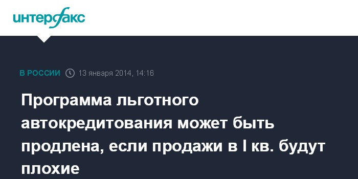 Москва. 13 января. INTERFAX.RU - Программа льготного автокредитования, действовавшая до конца 2013 года, может быть продлена, если продажи автомобилей в первом квартале 2014 года будут неудовлетворительные, сообщил вице-премьер Аркадий Дворкович.