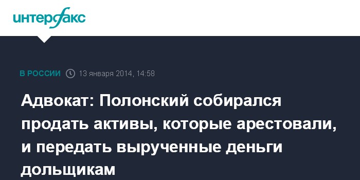 Москва. 13 января. INTERFAX.RU - Защита предпринимателя Сергея Полонского считает, что арест его акций не является большой проблемой, бизнесмен собирался отправить вырученные от их продажи деньги пострадавшим дольщикам.