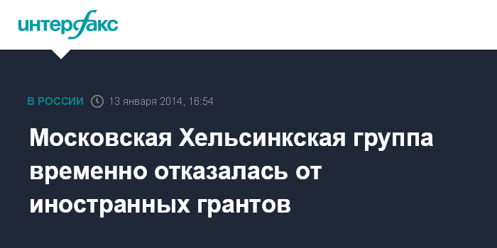 Москва. 13 января. INTERFAX.RU - Старейшая в России независимая правозащитная организация Московская Хельсинкская группа (МХГ) решила воздержаться от подачи заявок на западные гранты, сообщила "Интерфаксу" ее глава Людмила Алексеева.