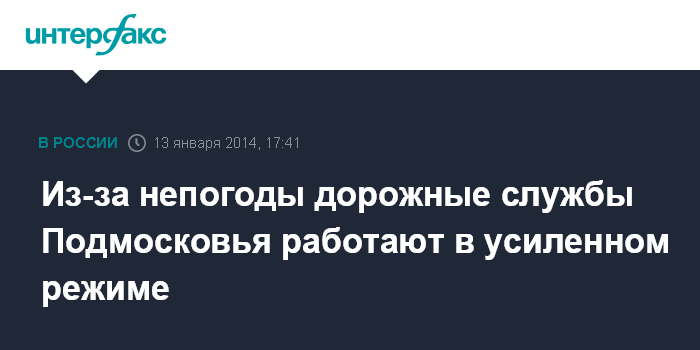 Москва. 13 января. INTERFAX.RU - Дорожные службы Московской области в связи с понижением температуры воздуха и образованием гололедицы переведены на усиленный режим работы.