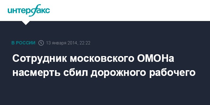 Москва. 13 января. INTERFAX.RU - Сотрудник московского ОМОНа насмерть сбил дорожного рабочего на 117-м км автодороги М-7 "Волга".