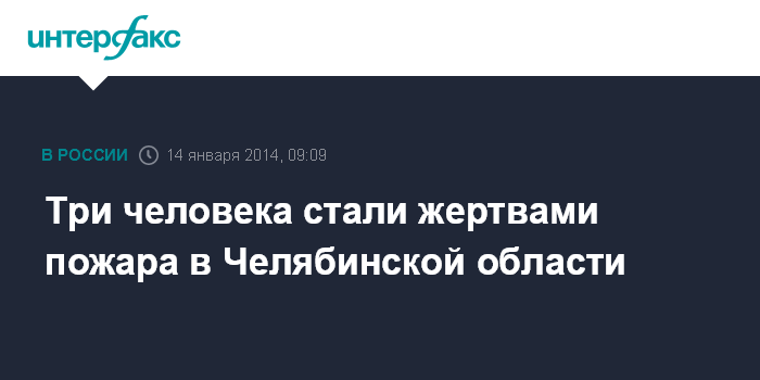 Москва. 14 января. INTERFAX.RU - Пожар в поселке Передовик Аргаяшского района Челябинской области во вторник унес жизни трех человек, сообщает ГУ МЧС РФ по региону.