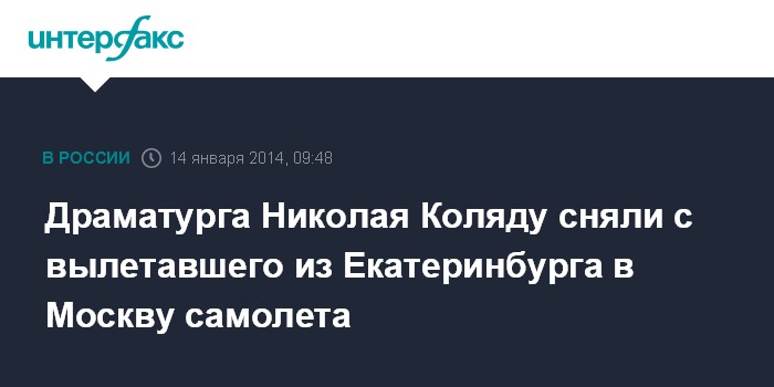 Драматурга Николая Коляду сняли с вылетавшего из Екатеринбурга в Москву самолета