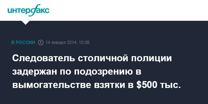 Следователь столичной полиции задержан по подозрению в вымогательстве взятки в $500 тыс.