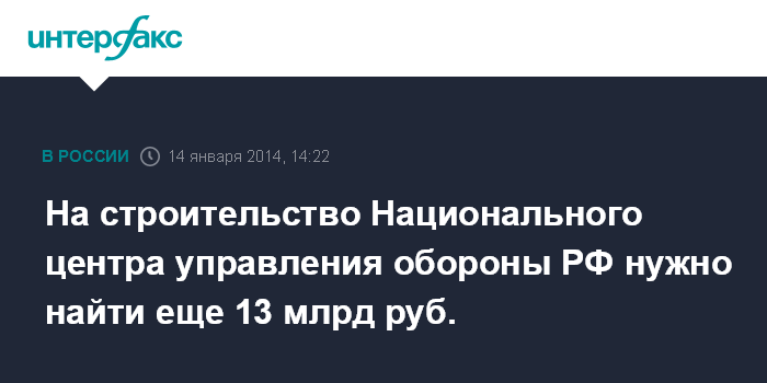 На строительство Национального центра управления обороны РФ нужно найти еще 13 млрд руб.