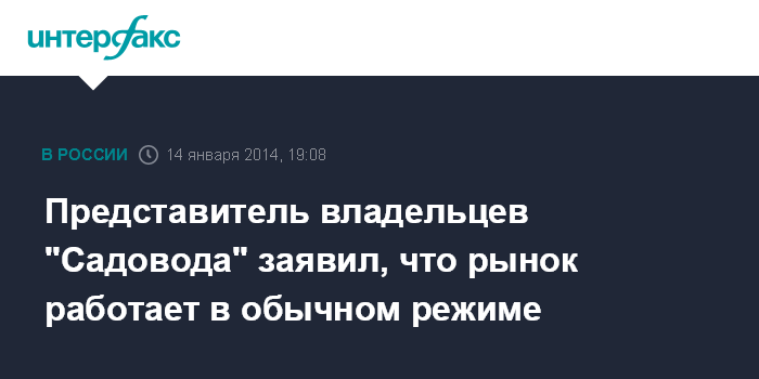 Отвечая на вопрос о том, как будет работать торговый комплекс в среду, Спиридонова заявила" Интерфаксу" вечером во вторник: "Садовод" будет работать в обычном, нормальном режиме".