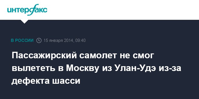 Пассажирский самолет не смог вылететь в Москву из Улан-Удэ из-за дефекта шасси