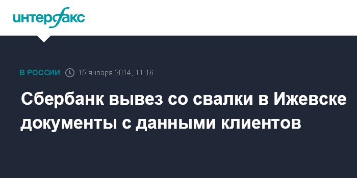 Москва. 15 января. INTERFAX.RU - Обнаруженные на свалке в Первомайском районе города Ижевска документы клиентов Удмуртского отделения Сбербанка России уже изъяты сотрудниками банка, сообщили "Интерфаксу" в пресс-службе финансовой организации.