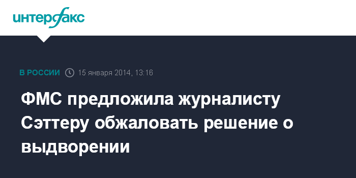 Москва. 15 января. INTERFAX.RU - Федеральная миграционная служба настаивает на законности выдворения из России американского журналиста Дэвида Саттера.