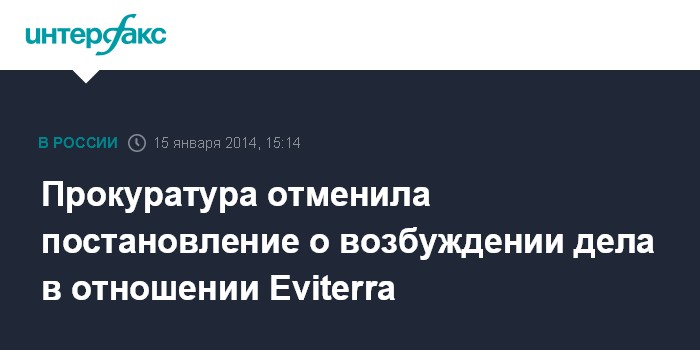 Прокуратура отменила постановление о возбуждении дела в отношении Eviterra