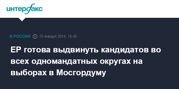 Москва. 15 января. INTERFAX.RU - В руководстве "Единой России" заявляют о готовности выдвинуть кандидатов партии во всех одномандатных округах на предстоящих в этом году выборах в Московскую городскую думу.