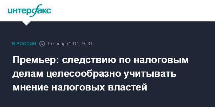 Москва. 15 января. INTERFAX.RU - Дмитрий Медведев считает, что следственные органы при возбуждении уголовных дел по налоговым преступлениям должны запрашивать информацию по ним в налоговых органах.