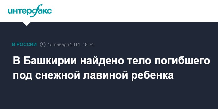 В Башкирии найдено тело погибшего под снежной лавиной ребенка