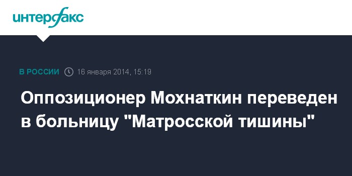 Оппозиционер Мохнаткин переведен в больницу "Матросской тишины"