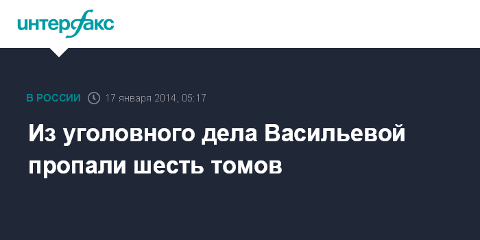 Москва. 17 января. INTERFAX.RU - Адвокат главной обвиняемой по делу "Оборонсервиса" Евгении Васильевой заявил, что из дела его подзащитной пропали шесть томов, сообщают "Известия" в пятницу.