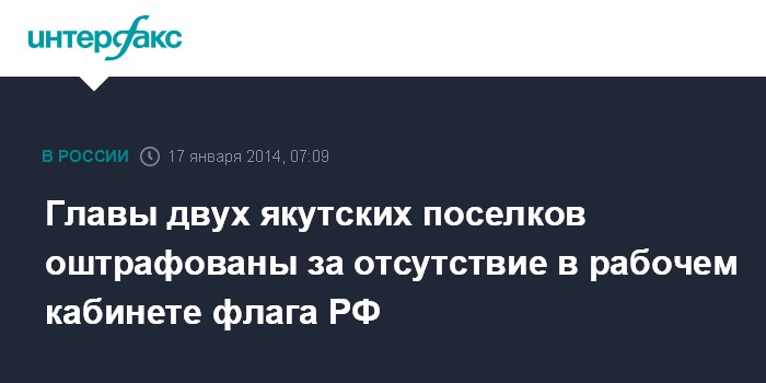 Главы двух якутских поселков оштрафованы за отсутствие в рабочем кабинете флага РФ