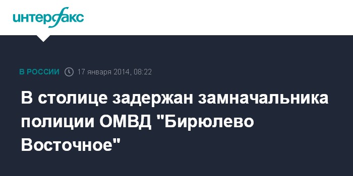 Москва. 17 января. INTERFAX.RU - Заместитель начальника полиции по московскому району "Бирюлево Восточное" задержан по подозрению в оказании содействия организаторам незаконного бизнеса, сообщили в пресс-службе ГУ МВД РФ по Москве.