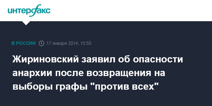 Москва. 17 января. INTERFAX.RU - В ЛДПР высказались против возвращения графы "против всех" в бюллетени на выборах в РФ.