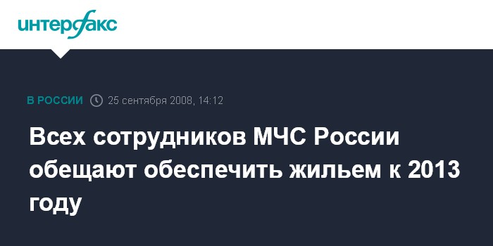 Москва. 25 сентября. INTERFAX.RU - В МЧС принята ведомственная целевая программа по обеспечению жильем сотрудников министерства на 2008-2010 годы.