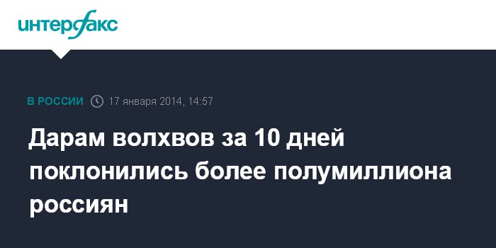 Москва. 17 января. INTERFAX.RU - Более полумиллиона верующих поклонились Дарам волхвов, привезенным в Россию с Афона, сообщил президент фонда Василия Великого Константин Малофеев журналистам в Петербурге.