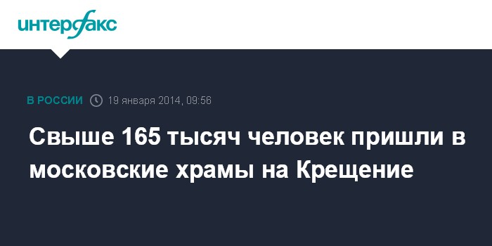 Москва. 19 января. INTERFAX.RU - Более 165 тыс. человек приняли участие в праздновании Крещения Господня в Москве в ночь на воскресенье, сообщили в пресс-службе ГУ МВД РФ по Москве. "В ночь на 19 января в Москве в праздновании Крещения Господня приняли участие более 165 тыс. человек. Ночные торжественные богослужения состоялись в 125 храмах, церквях и монастырях столицы", - сказал сотрудник пресс-службы "Интерфаксу" в воскресенье.