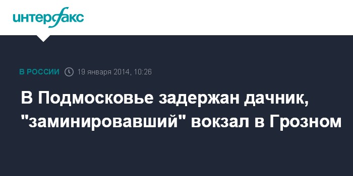 Москва. 19 января. INTERFAX.RU - Проживающий в подмосковной деревне столичный дачник, сообщивший о якобы готовящемся взрыве на вокзале в Грозном, задержан полицией, рассказали в воскресенье в пресс-центре МВД.