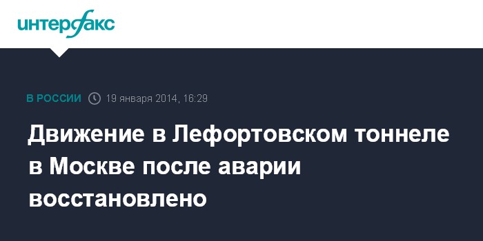 Москва. 19 января. INTERFAX.RU - Движение в Лефортовском тоннеле в Москве восстановлено, сообщили в пресс-службе Управления ГИБДД по Москве