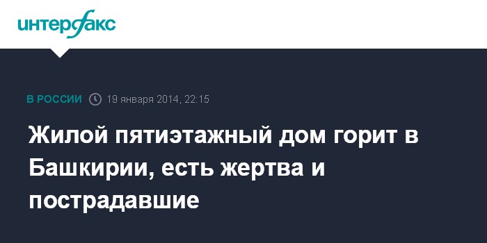 Уфа. 19 января. ИНТЕРФАКС-ПОВОЛЖЬЕ - Один человек погиб, двое пострадали в результате пожара в жилом пятиэтажном доме в башкирском городе Янауле, сообщили агентству "Интерфакс-Поволжье" в пресс-службе республиканского МВД в воскресенье.