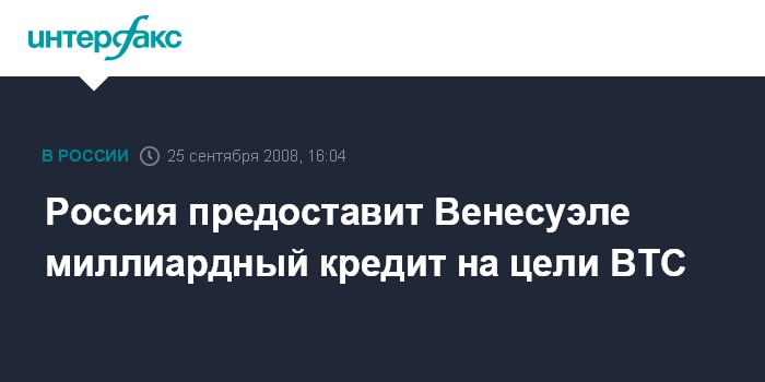 Россия предоставит Венесуэле миллиардный кредит на цели ВТС