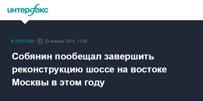 Москва. 20 января. INTERFAX.RU - Реконструкции московских шоссе, расположенных на востоке столицы, в основном будут закончены уже в этом году, сообщил мэр Москвы Сергей Собянин.