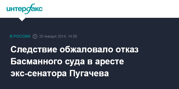 Следствие обжаловало отказ Басманного суда в аресте экс-сенатора Пугачева