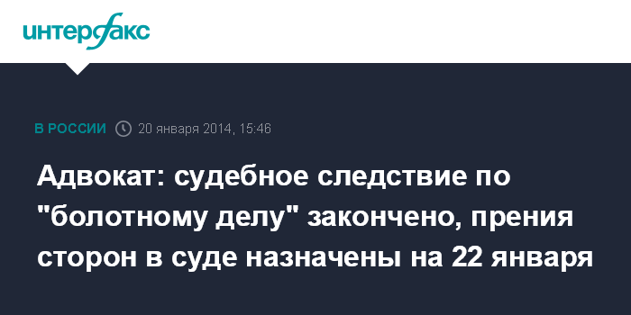 Москва. 20 января. INTERFAX.RU - Замоскворецкий суд Москвы 22 января проведет прения сторон по уголовному делу о беспорядках на Болотной площади 6 мая.