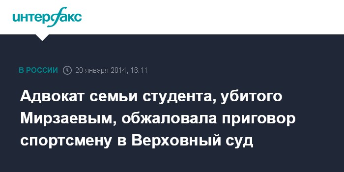Адвокат семьи студента, убитого Мирзаевым, обжаловала приговор спортсмену в Верховный суд