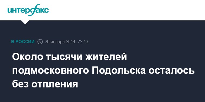 Москва. 20 января. INTERFAX.RU - Почти тысяча человек осталась без тепла из-за прорыва трубы в подмосковном Подольске.