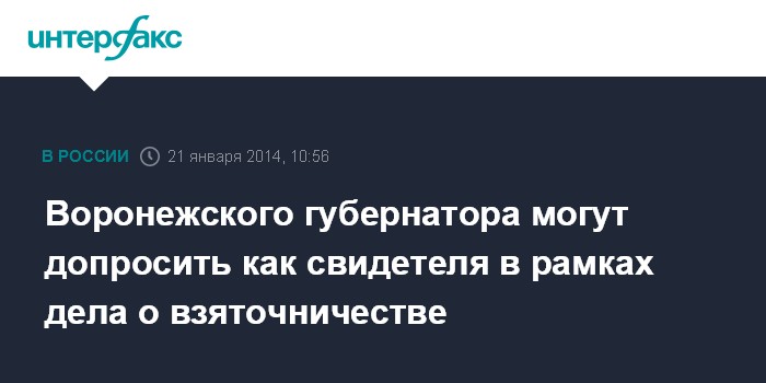 Воронежского губернатора могут допросить как свидетеля в рамках дела о взяточничестве