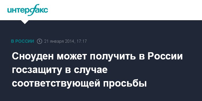 Москва. 21 января. INTERFAX.RU - Правоохранительные органы РФ готовы рассмотреть заявление бывшего сотрудника американских спецслужб Эдварда Сноудена о госзащите, если он или его представители направят соответствующее обращение.